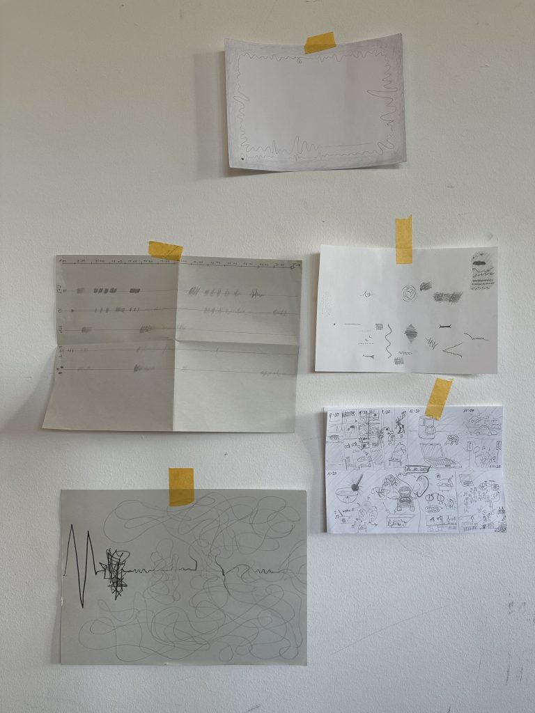 Die Studierenden verfassten über einen Tag ihrer Wahl eine Hörpartitur, in der sie wesentliche Höreindrücke des Tages auf unterschiedlichste Weisen notierten.