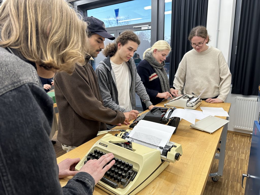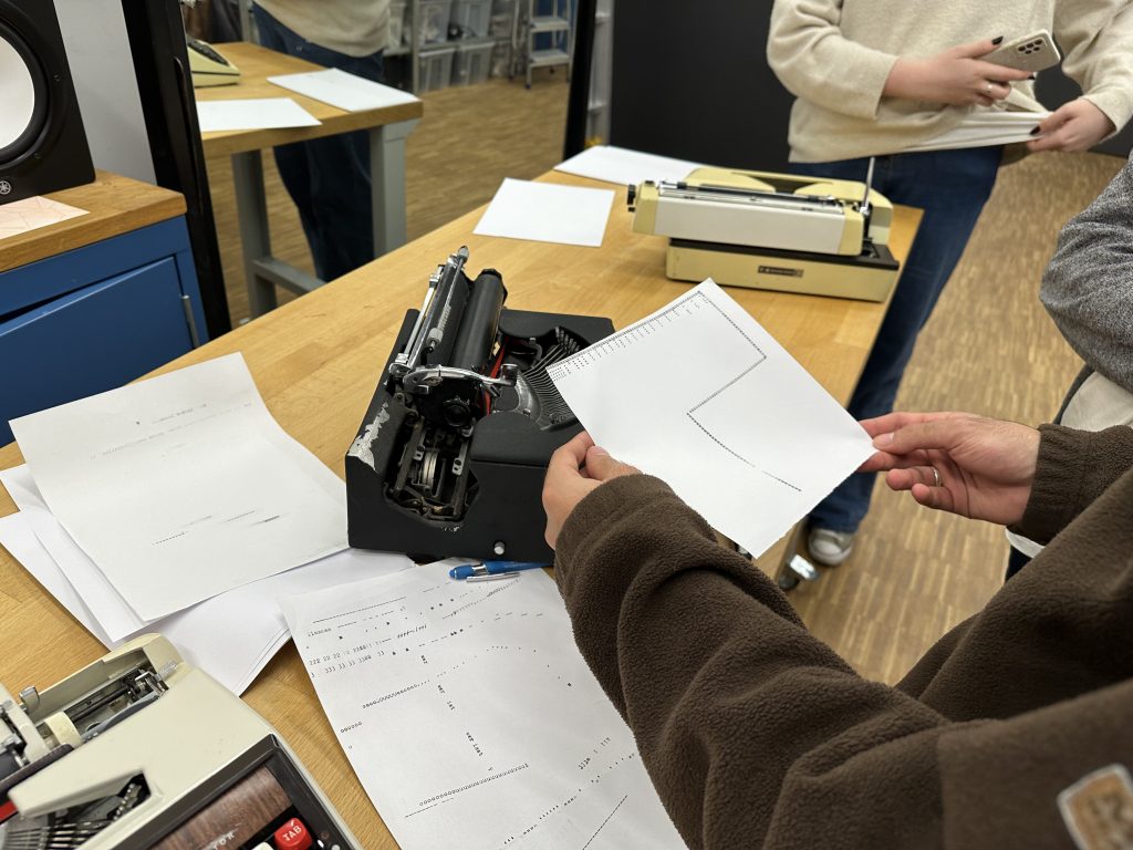 Die Studierenden fanden sich in der Arbeit mit klassischen Schreibmaschinen wieder, mit denen Sie Werke erarbeiteten, die als Grundlage späterer Sprech-Aktionen dienen sollten.
